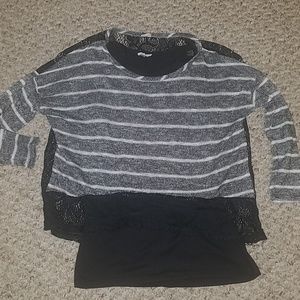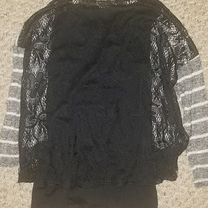 Made to look like a cropped shirt with a linger tank underneath but it is all one piece. the back has a lacy detail. My daughter paired this with skinny jeans, black boots, and a long pendant necklace. Super cute (and maybe a little sassy!) :)