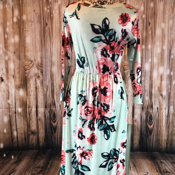 Brand new maxi dress in floral print and made of polyester fabric. Very light weight and available in multiple colors and sizes. Sizes run a bit smaller so please let me know if you have any specific measurement questions. The bust size (measured on one side) is about 17 inches for size small, about 18 inches for medium, about 19 inches for Large, about 20 inches for XL and about 21 inches for XXL. The material is stretchy so it’s flexible. Sleeves are 3/4th.
