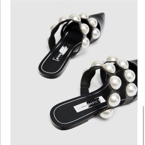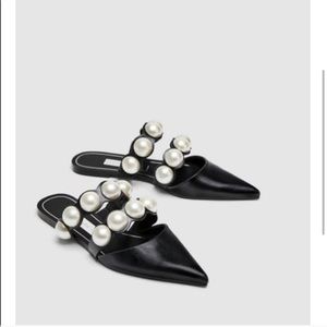 Zara Flat Pointed Mules with Pearls Size 6.5