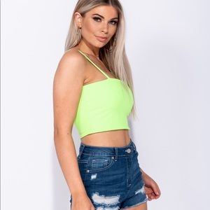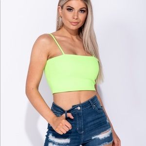 Fashion crop top is available is the it color this season. Pair with jeans or pencil skirt for fun flirty look! Crop top has stretch and is ready for to add a pop color to any outfit!
