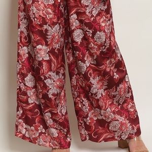*Trendy strapless lined wine floral jumpsuit has lots of detail with the pull on style, the bold floral print throughout, the thick elastic waist band with adjustable waist tie & the wider legs