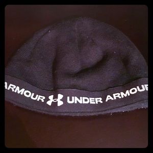 Beanie style hat by Under Armour, acrylic, lined, logo goes all around the trim, no rips or pulls, GUC