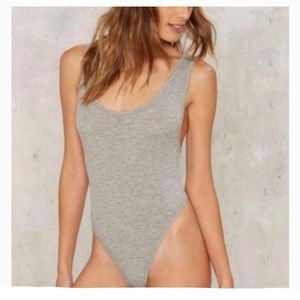 🔥Nasty Girl Thong Gray Ribbed Bodysuit Medium 🔥