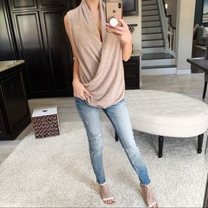 This sleeveless top is super flattering and stretchy. Great for any body type. Multiple draping layers. Thermal texture style material.