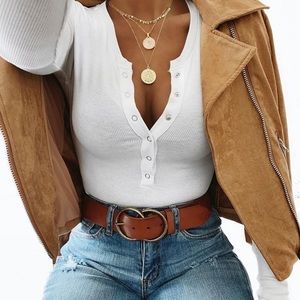 *NEW* VICI ELISE RIBBED HENLEY BODYSUIT - WHITE