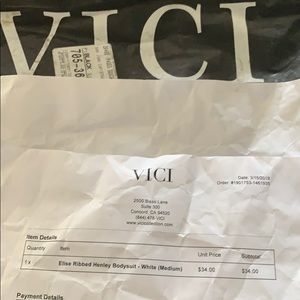 Love this bodysuit! Brand new with receipt in picture. Vici didn’t attach a tag to it. I just received in the mail, but I need a Small. Sold out online.