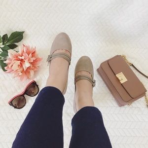 Round-toe pumps with double strap and buckle closure at vamp