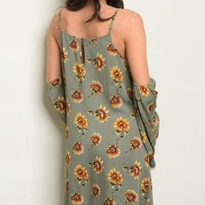 OLIVE WITH FLOWER PRINT DRESS