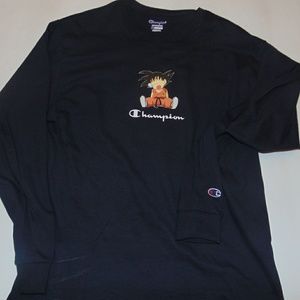 DBZ X champion collaboration stand out with this one of a kind shirt order yours today these will sell fast and once gone they are gone