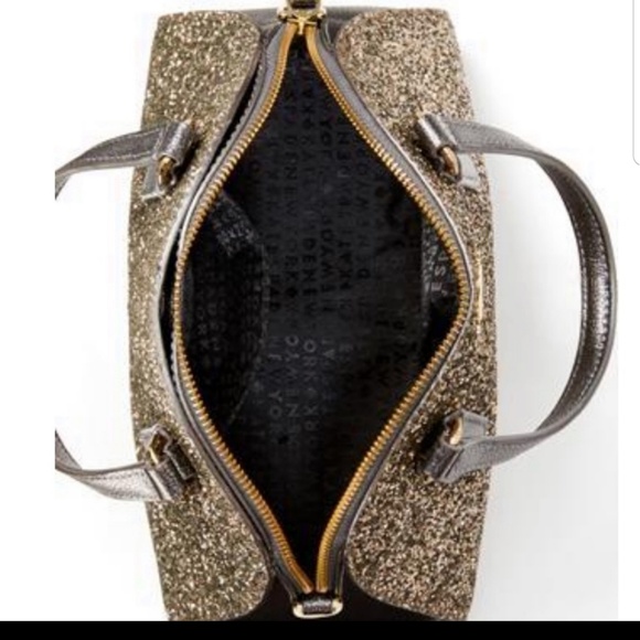 Gunmetal glitter pebbled leather. Polished 14Kt light gold hardware. Leather shoulder strap with 23" drop. New with tags. Ships immediately.
