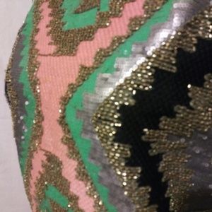 English Rose Green Pink Gray and Black Beaded Sequence Dress.. Size S... Measurements: Bust: 34", Hips: 36", Front Len: 29"