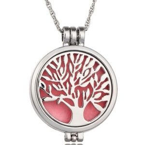 NWT Aromatherapy Necklace made of stainless steel. Beautiful Tree of life pattern. Comes with 4 felt circles for your favorite oils. Can also be used as a locket for your favorite photo if you choose. $38