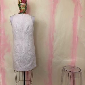 A classic shift dress with new details—like an exposed zipper, front pockets and textured jacquard—makes for a fun spring dress that's both mod and elegant. The fact that it's really, really pretty doesn't hurt either. Cotton/poly with poly/viscose/elastane shoulders. Bra keeps. Back zip. Machine wash. For the best fit, we recommend ordering one size smaller than your usual size. Straight silhouette 17.75" underarm 33.5" L