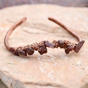 Hi thank you for looking at this brand new design cuff bracelet. I created this with untreated rubies and solid copper.