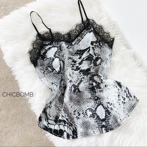ONLY 1 LEFT! Eyelash Lace Cami with snake print