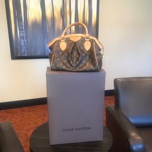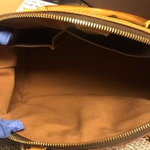 Classic handle bag from Louis Vuitton rendered in the house's iconic Monogram coated canvas and trimmed with natural vachetta leather.
