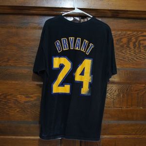 Awesome Kobe Bryant Black Mamba Tee with Bryant 24 on the back like a jersey. Slight fade on the back graphic but adds character nonetheless. This is a must-have for any Kobe fan.