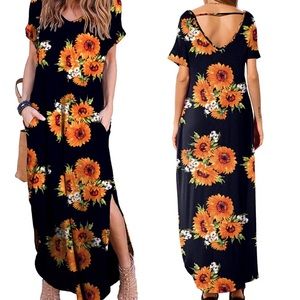 💛SUMMER NYC BLACK Floral Woman’s BOHO POCKET MAXI Dress *NWT*