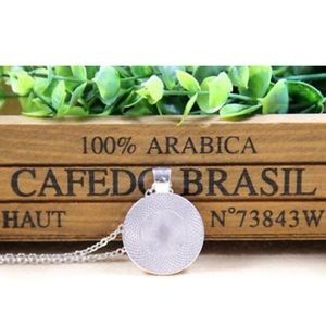 Beautiful glass dome necklace! This design is based off a vintage ad for a French Chablis wine. Elegant & brightly colored, I love this piece.