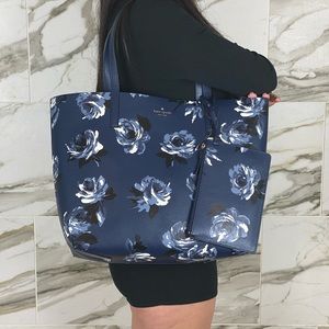 Nwt Kate Spade Mya reversible Navy multi tote