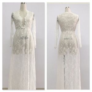 Sexy Boho Lace White Deep V Long Lingerie Dress