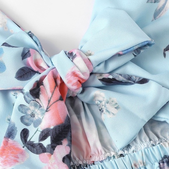 Front Tie Floral Romper! Measurements are in the pictures. 97% Polyester 3% Spandex. Comment if you need a size not in stock!