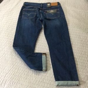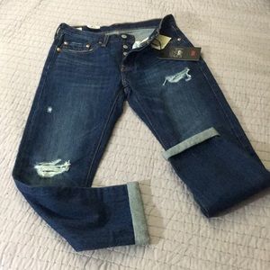 New Levi’s Taper 501 Premium Button Fly Jeans. Mid-rise, tapered leg, relaxed through hip and thigh. Dark wash 100% Cotton.