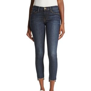 Raw-cut, uneven hems give home-shorn character to relaxed straight-leg jeans distressed with light fading, whiskering and shredded abrasions. FRAME's premium denim features the perfect amount of stretch to ensure a comfortable fit and exceptional recovery.