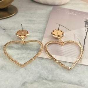 Brand new with tags Round Dot Hollow Heart Gold Hoop Earrings.