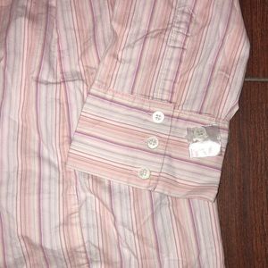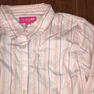Liz Lange Maternity for Target Pink Striped Buttondown Top with extra buttons. 72% Cotton, 25% Nylon, 3% Spandex. L (18-4)