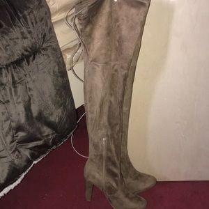 Thigh high suede chunky heel boots. Worn once in perfect condition