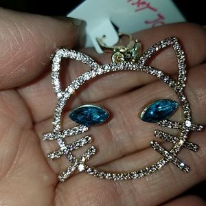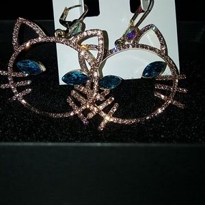 Fabulous rhinestone Betsey Johnson Kitty Cat earri