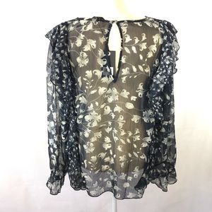 NWT dark blue longsleeve top with ruffle details.