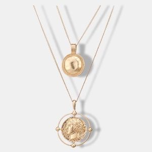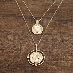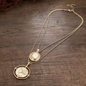 Be on trend with this double chain gold necklace with coin pendant!