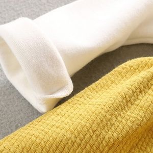 - Top: 100% Cotton / Bottom: 50% Cotton, 50% Polyester