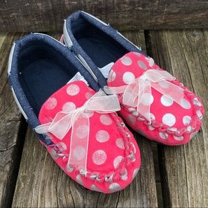 Girls Suede/Denim Polka-Dot Moccasin Slippers! NEW!