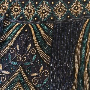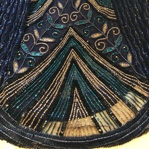 I have added the size chart with measurements for size 18- finally!, I know many of you were waiting. This dress is gorgeously beaded, and at 5’7” it comes to my knees, so if you need to bend over the world won’t see your bum! Most other flapper dresses I tried were waaaay too short, this is expertly made in the UK. Fits American sizes 16, 16W, XXL, 1X, 2X, 18 and 18W very comfortably. So flattering and sexy and the beading helps it drape in all the right ways. NWT. Embrace your inner peacock goddess!!! Wear over a black slip and you will be the belle of the speakeasy. Beautiful and well made, hand-beaded!!!!, not a costume piece —- I spent $349 when it was on sale (plus shipping) on this beauty and it can be yours if Gatsby dresses are your fanfare