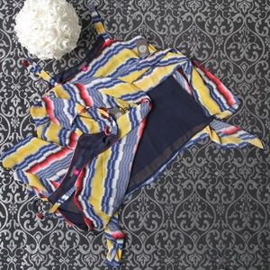 New With Tags VINCE CAMUTO "Gold Charm" Chiffon Blue White Yellow Multi Stripe Sleeveless Tank Top Shirt Blouse PLUS SIZE