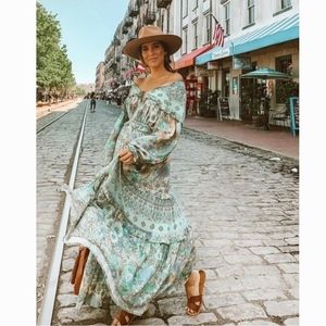 Brand new with tag still in plastic. Exclusive FP color turquoise Amethyst gown maxi dress by spell designs byron bay and the gypsy collective. Small S. No trade please. Price is firm. Price reflects high% posh fee, rarity, way above rrp I originally paid for this. This is my personal spell collection.