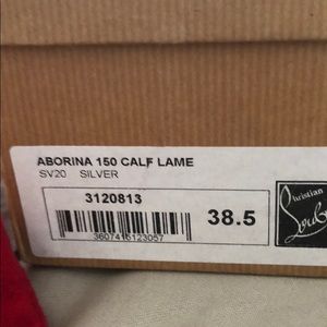 Barely worn Christian Louboutin Silver Aborina Heels. Has red rubber protectors on the bottom. Comes with box, bag and extra heels.