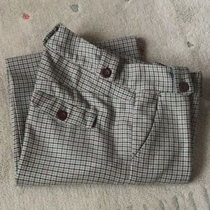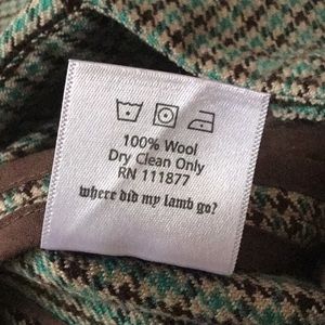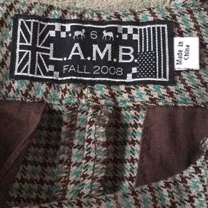 Gwen Stefani’s LAMB brand designer 100% wool pants. From the Fall 2008 collection. Plaid pattern in teal green brown & beige. High waisted & wide leg with cuffs. Two pockets in front as well two buttoned on back. Waist 16 inches across. Inseam 33 inches. Wide leg 12 inches across at bottom. Size 6. Dry clean only. Purchased at Nordstrom.