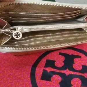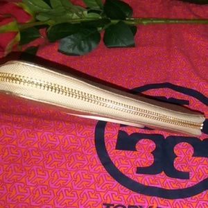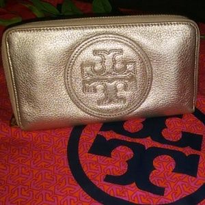 ๐Beautiful Gold Tory Burch Double Stacked Logo Zip Around Wallet๐