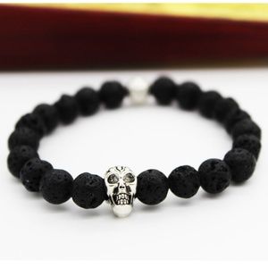 NWOT Beaded Lava Rock Skull Bracelet. Approx 7" inside circumference. Beautiful.