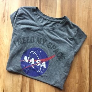 Like Ariana Grande, do you need your space? Let people know with this super soft, comfy shirt. It reads, “I NEED MY SPACE” with the NASA decal beneath. No tag, but fits large or a loose medium.