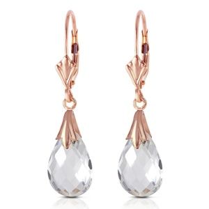 14K. SOLID GOLD LEVERBACK EARRING WITH WHITE TOPAZ (Rose Gold)