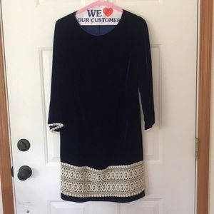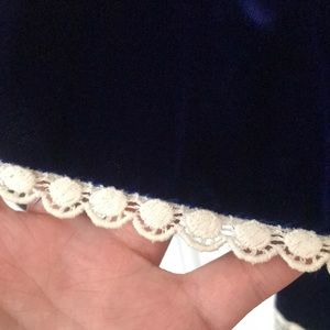 Vintage blue velvet dress. No tag. Beautifully sewn, with no actual size or measurements. Freshly laundered. Fits me like a glove and I am five-four.
