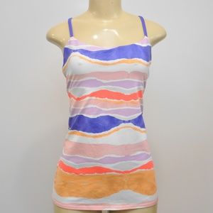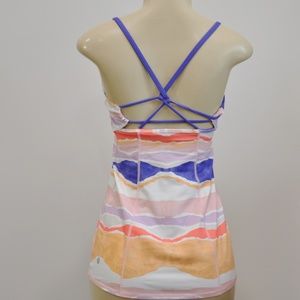 Lululemon Dancing Warrior Tank Top Size 6 Bleacher Stripe White Iris Flower Luon. Pre-owned Gently used no flaws to note. Padded Bra Cups are NOT included.