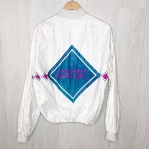 A classic windbreaker promo jacket from the 10th anniversary (1988) of the Cascade Run Off race in Portland Oregon. Super rad vintage race warmup.