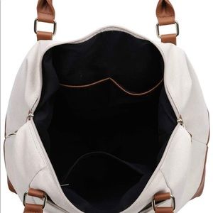 Super cute off white travel bag. Never been used. Great/ durable material with a trolley sleeve!