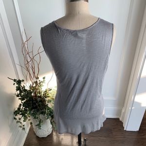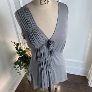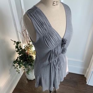 Olivia Moon Women's Asymmetrical Ruched Knit Top/Gray Sleeveless/Deep V Neckline/Fits at Hipline/Flattering Fit/Juniors Size L/100% Rayon/